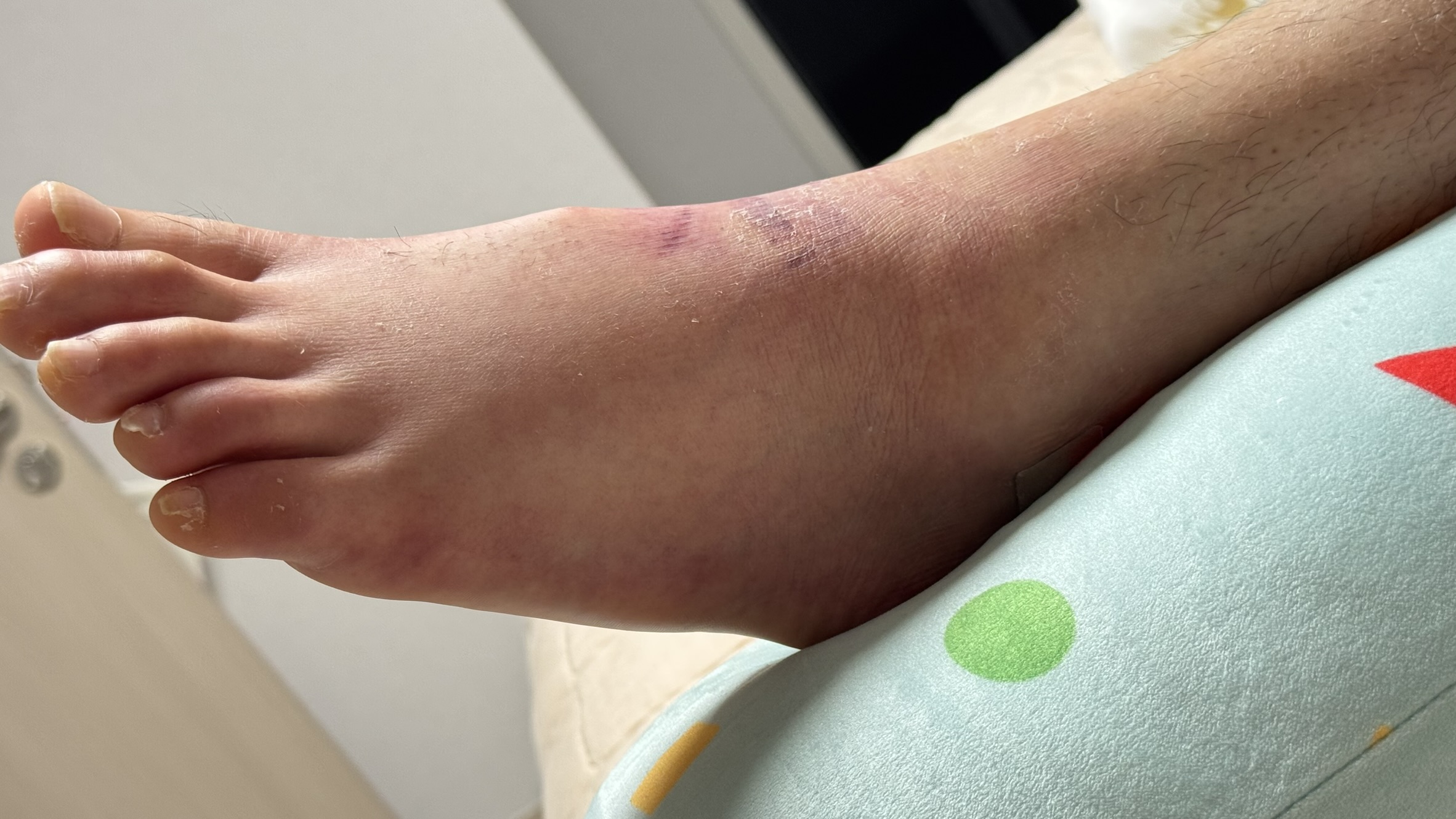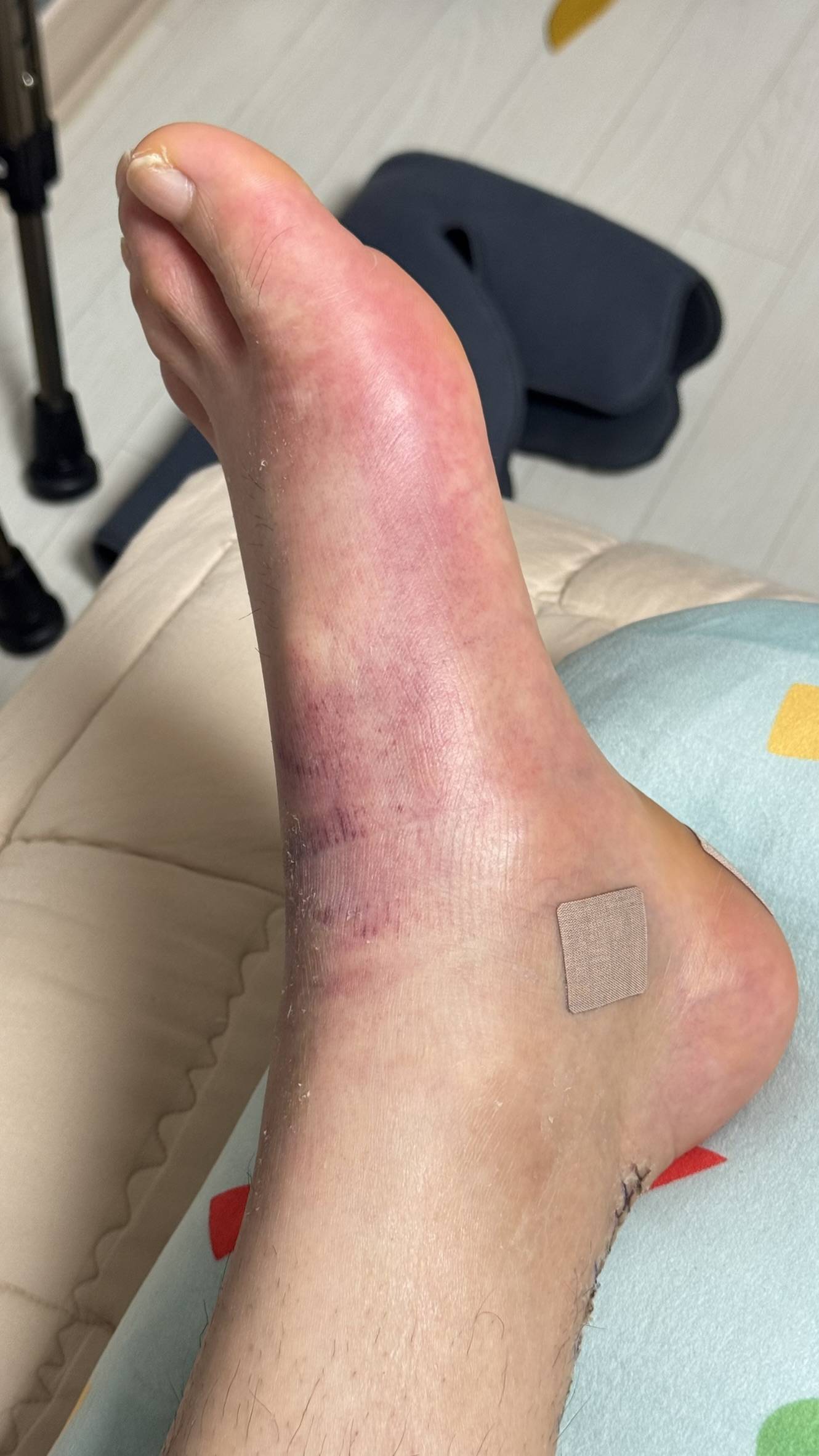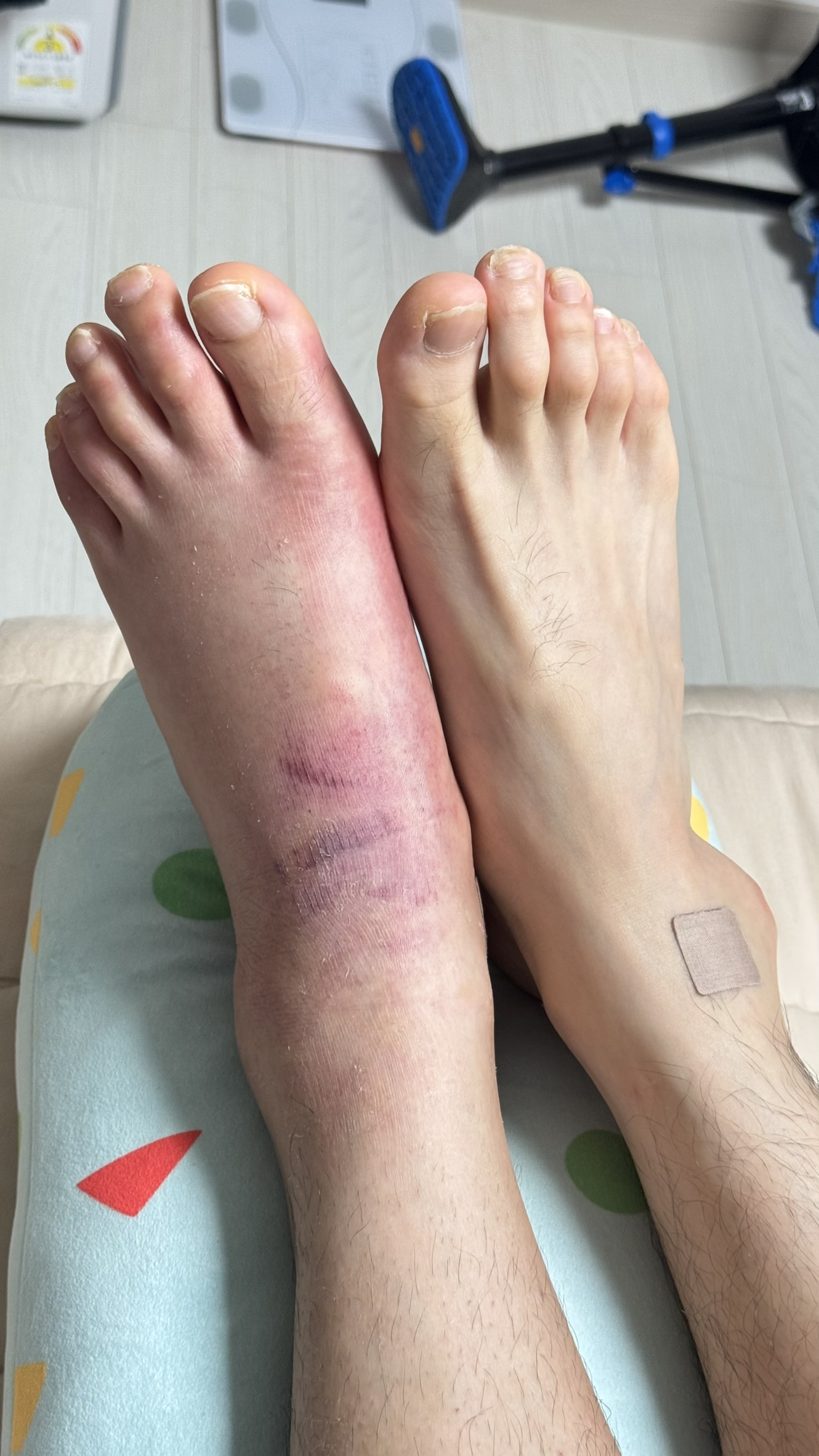 파열 되었던 다리가 많이 부어있고 멍도 들어있었어요..(맴찢_)